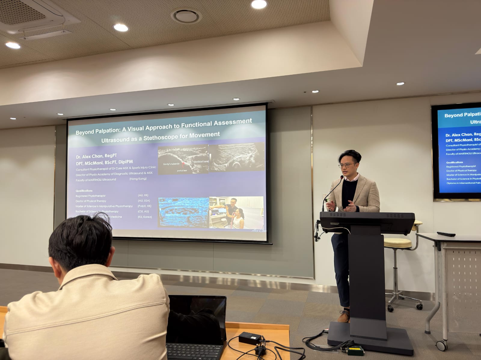 Alex分享的部份以超聲波為核心,展示「結構」與「功能」的互動,以視覺化評估讓檢查從「感覺」變得「可視化」,讓出席者了解「結構變化」與「動態表現」之間的關聯。